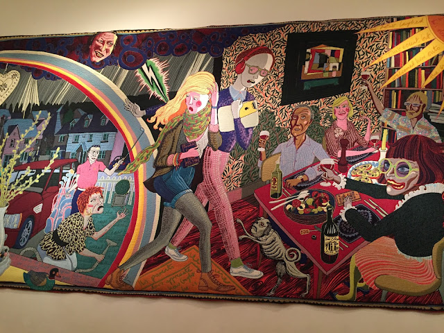 Louise Bourgeois says 'Art is a guaranty of sanity', so I took myself off to see an amazing tapestry by the wonderful Grayson Perry. It certainly lightened my mood for a little while. It is from The Vanity of Small Differences I have shared some photos, but you really need to see it catch the many little details that make it so witty and wonderful.