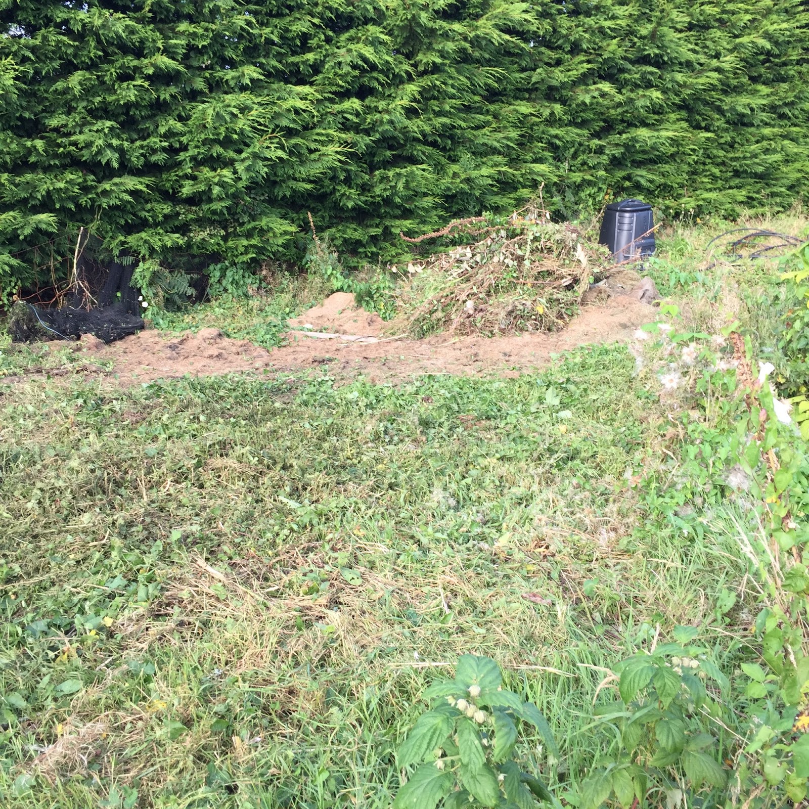 We have cleared around the oil tank, and I set up my compost bin for kitchen waste and have been burning the bindweed, though I think it will take forever to get rid of it for good.